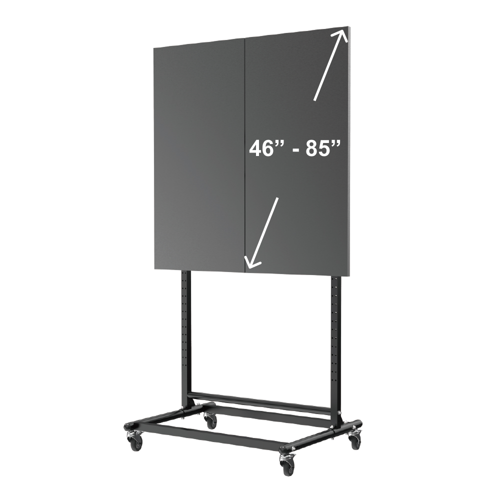 Meet your application needs with the flexibility to move your display to different locations. This Video Wall Cart features a 2 x 1 Portrait configuration, ideal for 46 to 85-inch screens, and supports VESA Compatible from 200x200 to 800x800.