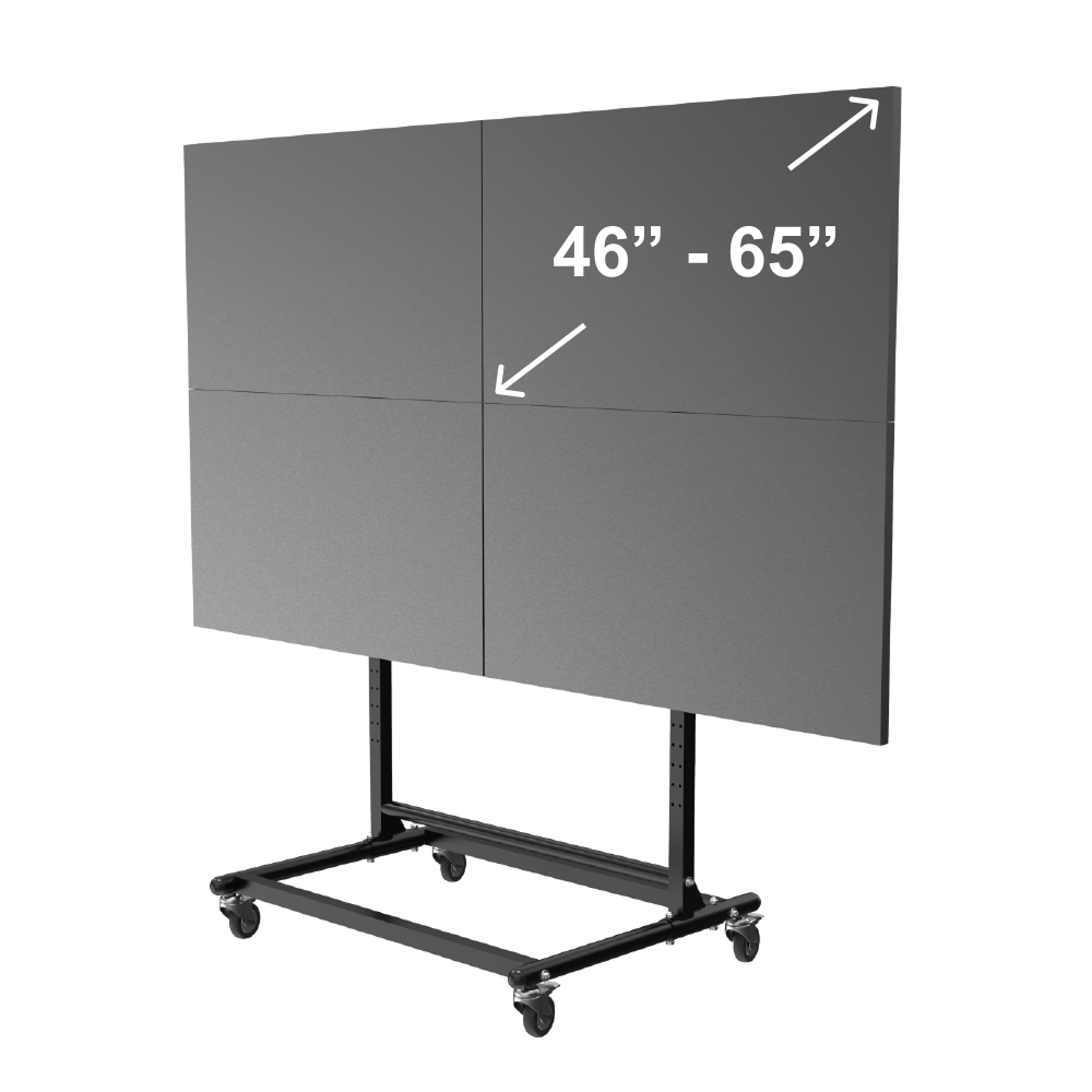 Maximize your space with our versatile Video Wall Cart, offering space efficiency without the need for permanent wall installation. Tailored for 46-65 inch displays, the 2x2 Configuration is VESA Compatible from 200x200 to 800x400.