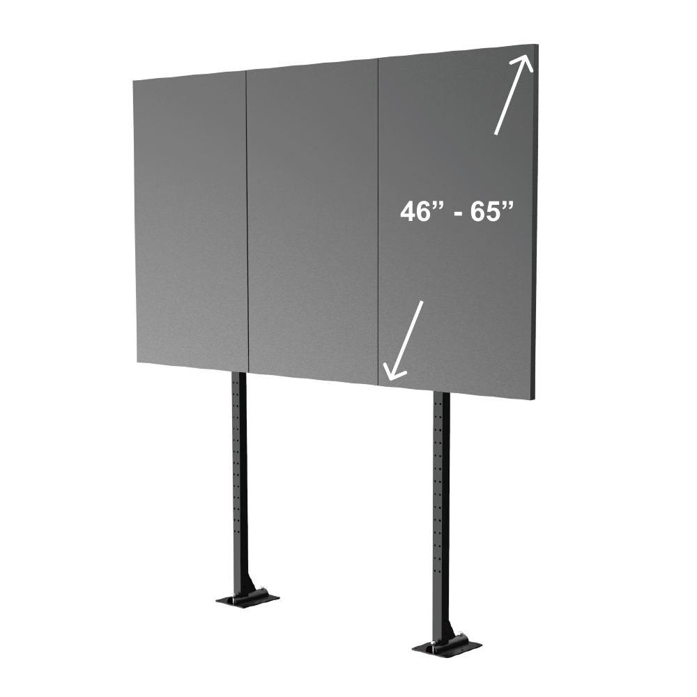 Transform your space with a secure and hassle-free floor-mounted video wall – no need for wall mounts. Tailored as a 3 x 1 Portrait configuration, it accommodates 46-65 inch screens, aligning seamlessly with VESA Compatible standards ranging from 200x200 to 800x800.