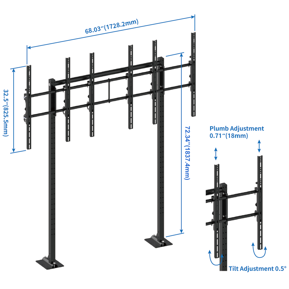 Crafted with a durable metal composition and a protective powder coating, it guarantees enduring stability, providing a reliable foundation for your video wall. The installation process is simplified with the pre-sorted hardware pack, making it user-friendly and efficient.